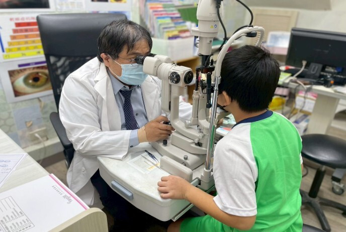 眼科醫師洪啟庭(左)提醒,發現孩童常長眨眼、揉眼,就要注意並儘快就醫檢查。(洪啟庭提供)