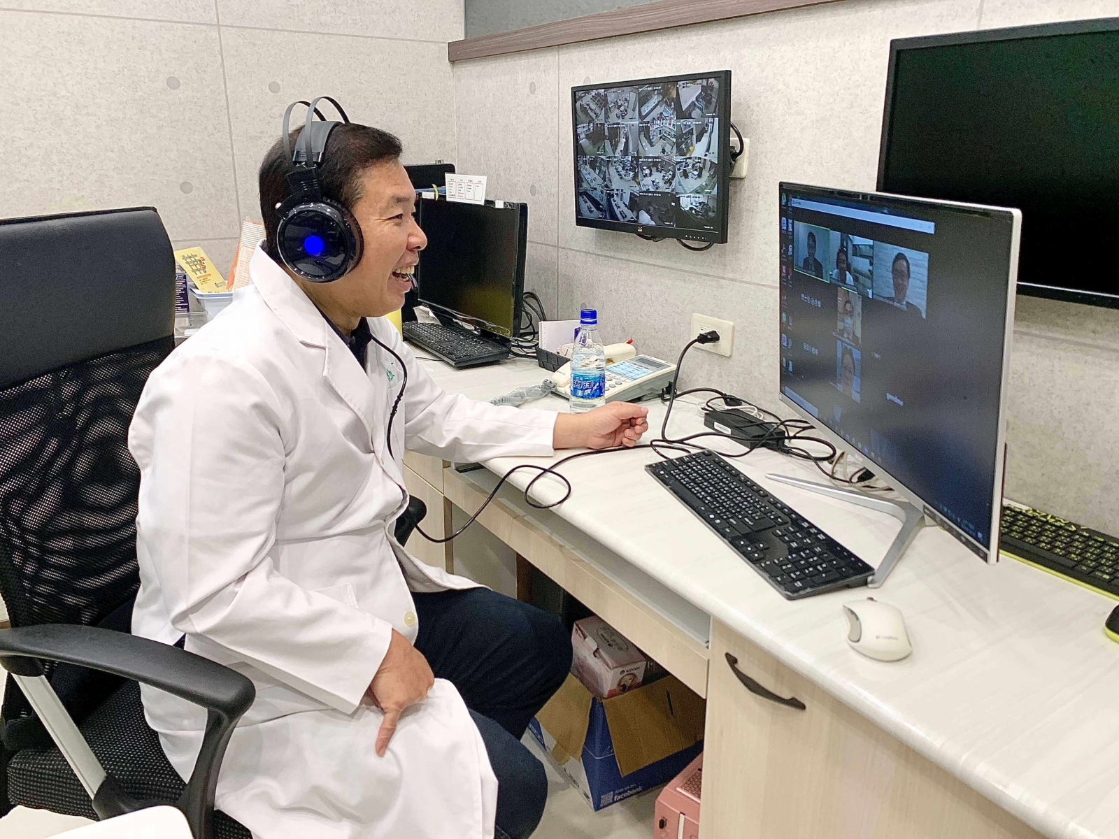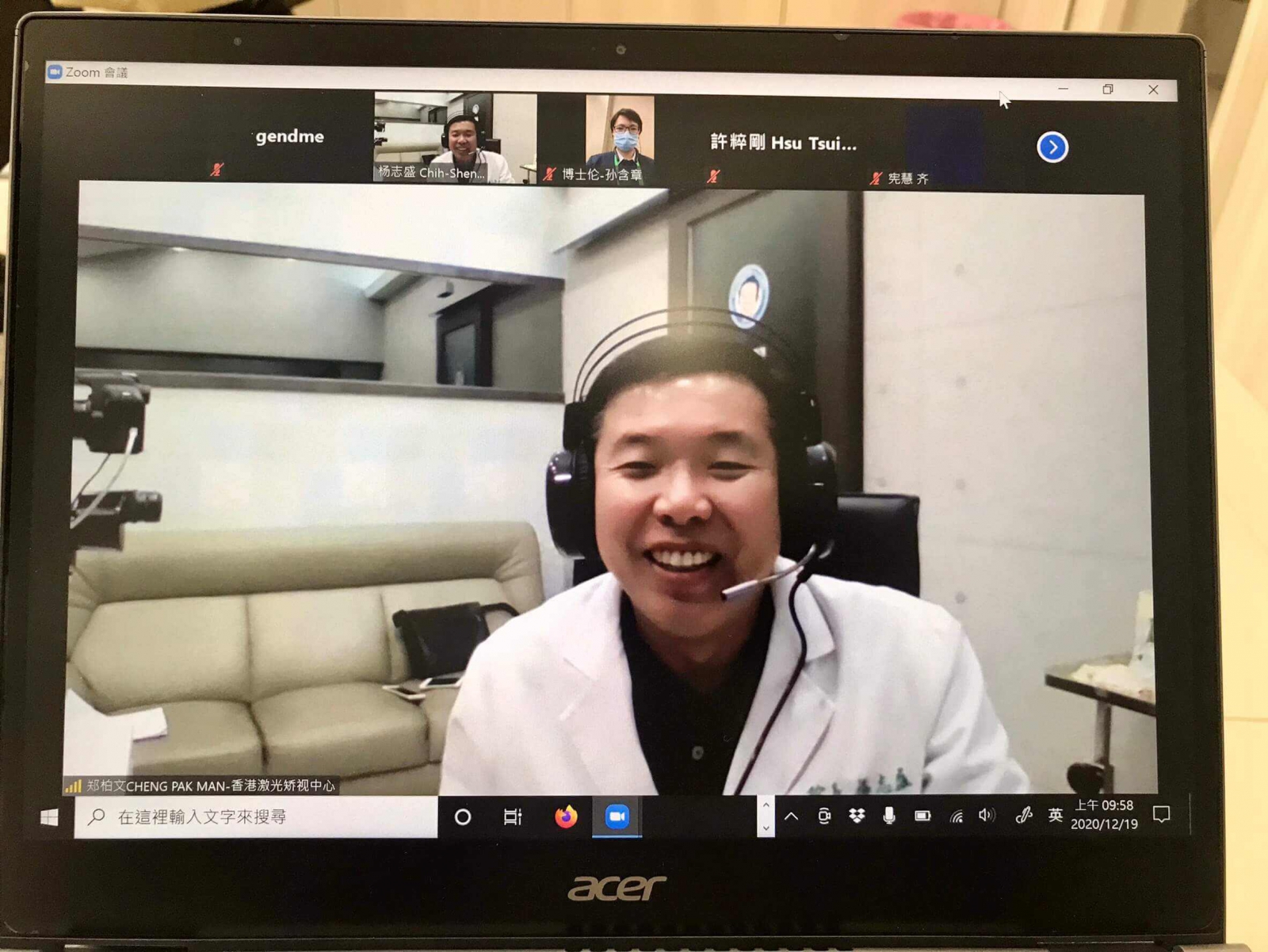 應疫情的關係,大會特別用視訊的方式邀請台灣達特楊眼科聯盟楊志盛總院長-代表台灣醫師跨海分享近視雷射手術後的白內障手術要如何來施作。