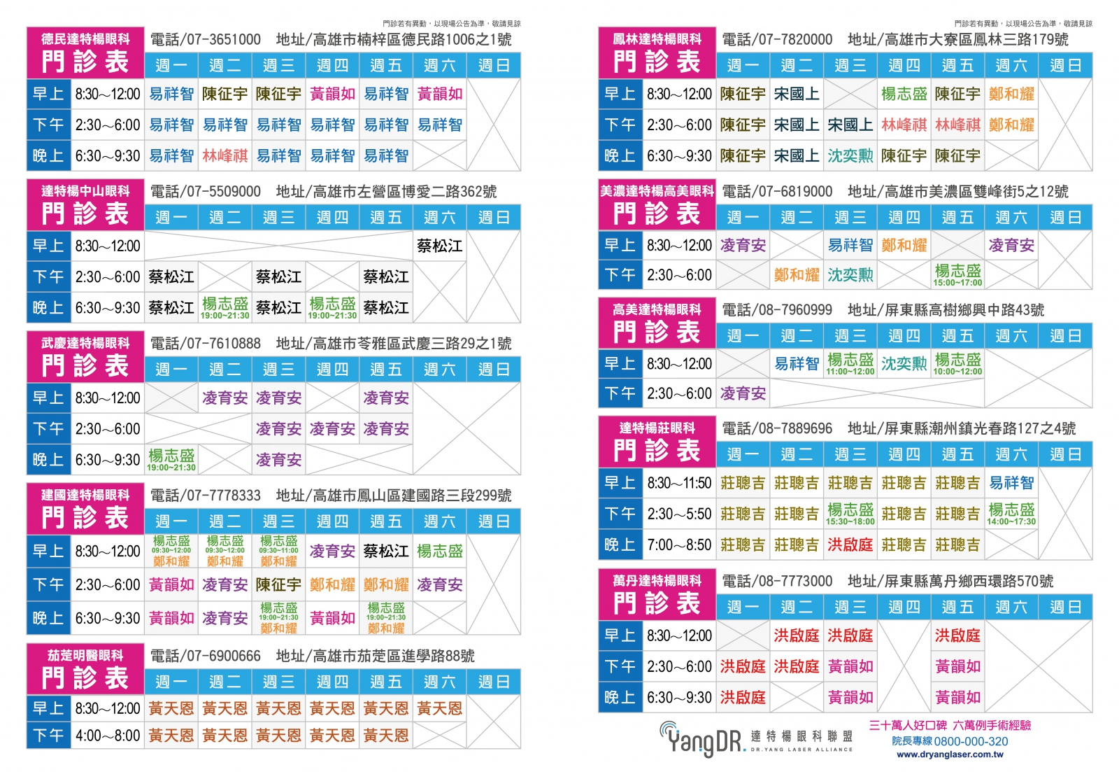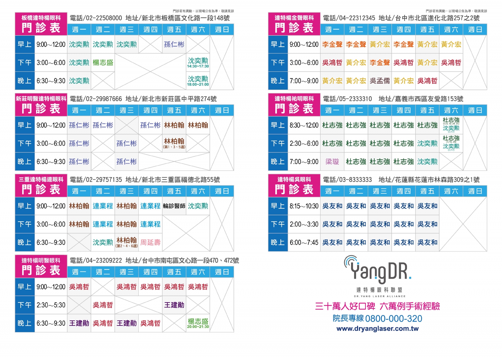 Home最新消息院所公告 2026-01-01 院所公告達特楊1月份一覽門診表 分享到Facebook 分享到LINE 複製此頁連結 ※ 門診情形若有異動,以現場公告為主,敬請見諒 ※ 2026-01-27 😵💫 隱形眼鏡戴不住?不是你眼睛嬌,是它真的在求救! 2026-01-21 👀乾眼症注意!室內乾燥開暖氣超傷眼⚠️ BACK