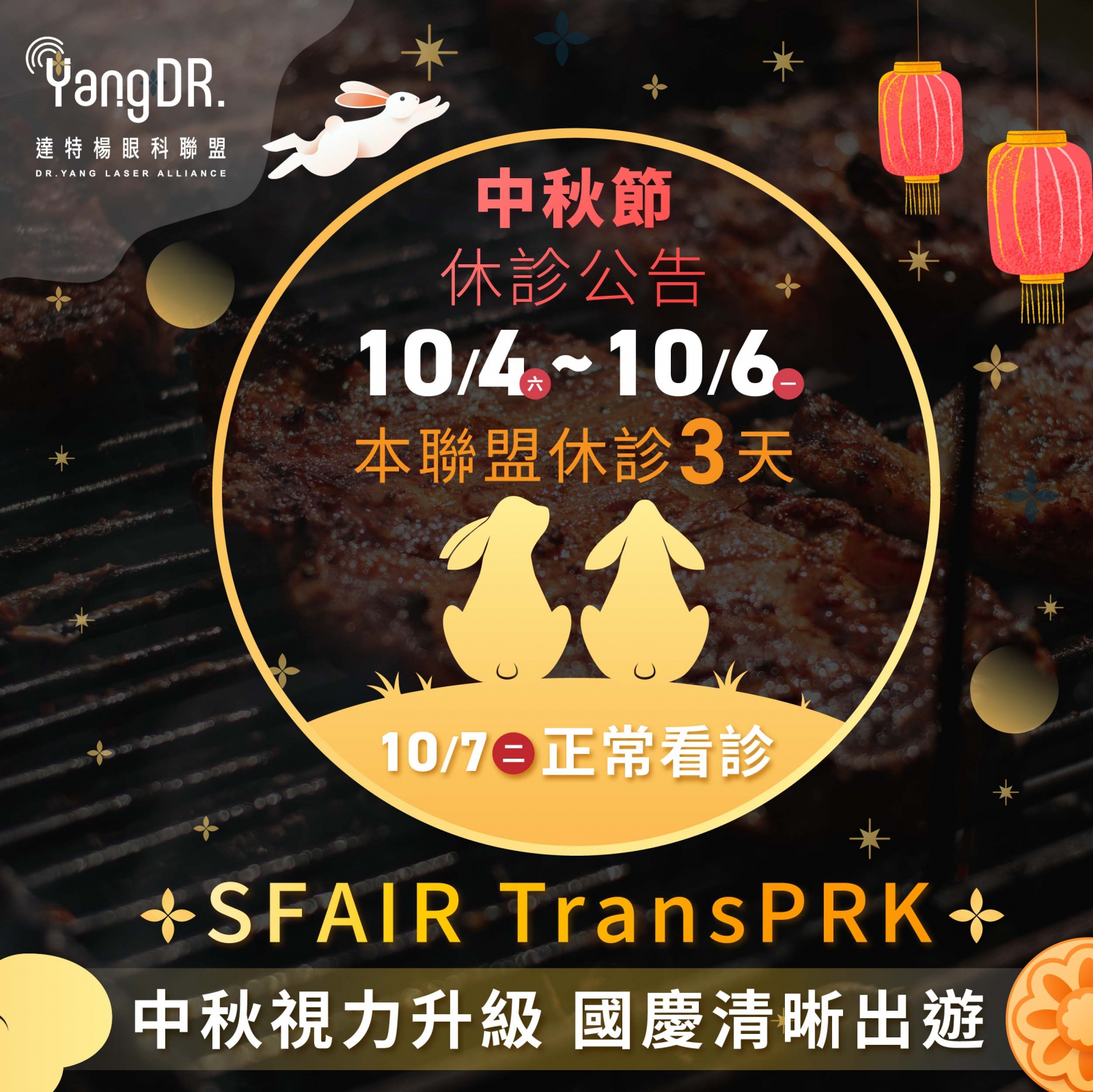 #達特楊眼科 #SFAIRTransPRK近視雷射 #近視雷射 #眼科權威 #楊志盛醫師 #中秋節